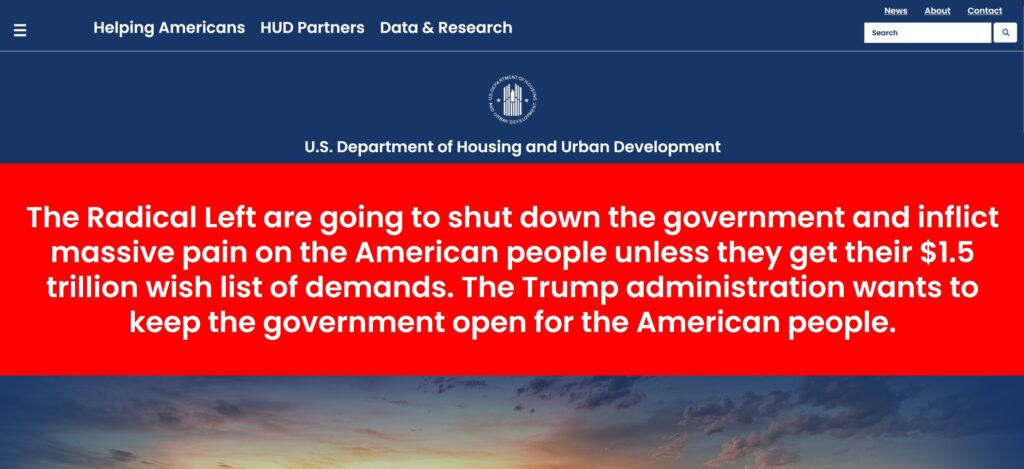 A HUD spokesperson responded to Scotsman Guide’s request for comment with the following statement: “The Far Left is barreling our country toward a shut down, which will hurt all Americans. At HUD, we are working to keep critical services online and support our most vulnerable. Why is the media more focused on a banner than reporting on the impact of a shutdown on the American people?”