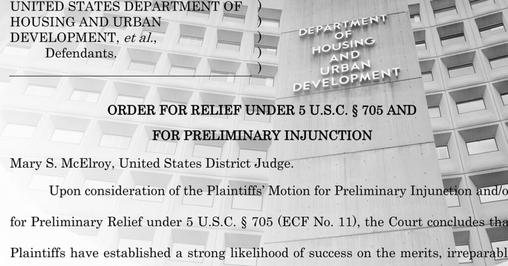 In a press release, she stated: “While the litigation is ongoing, today’s order puts clear limits on [HUD’s] actions and affirms the urgency of the concerns we raised.”
