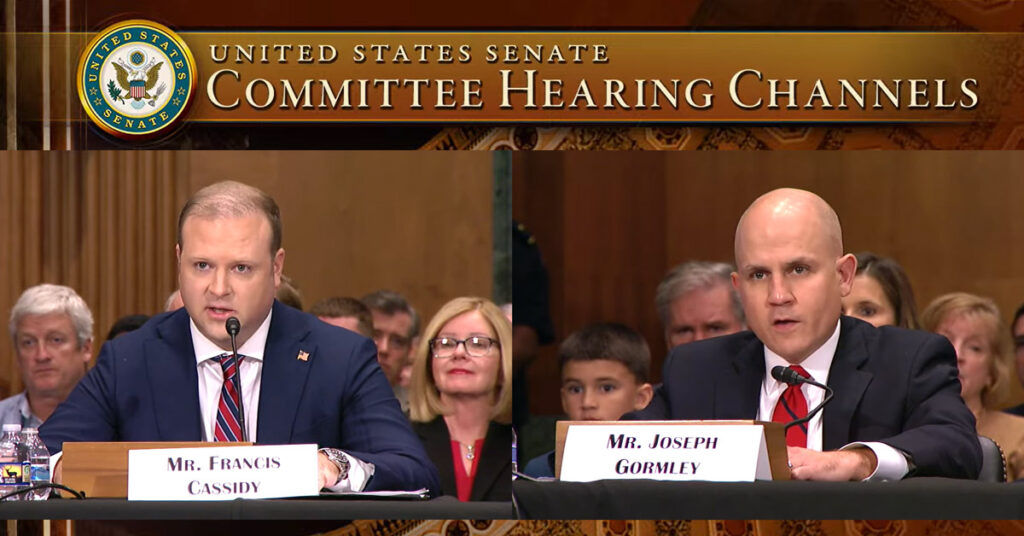 The majority of the questions were directed to Cassidy and to Paul Hollis, the nominee to be director of the U.S. Mint. The other nominee involved in the hearing was Travis Hill, the pick to be chairman of the board of the Federal Deposit Insurance Corp.