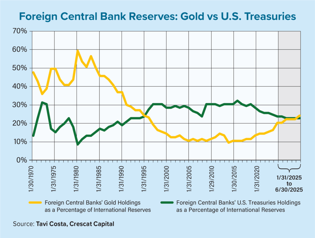 Foreign central banks have been leading the charge, and for the first time in nearly 30 years they hold more gold than U.S. Treasury bonds. It’s not just a diversification play, but a strategic pivot, reflecting a broader hedge against traditional reserve assets.